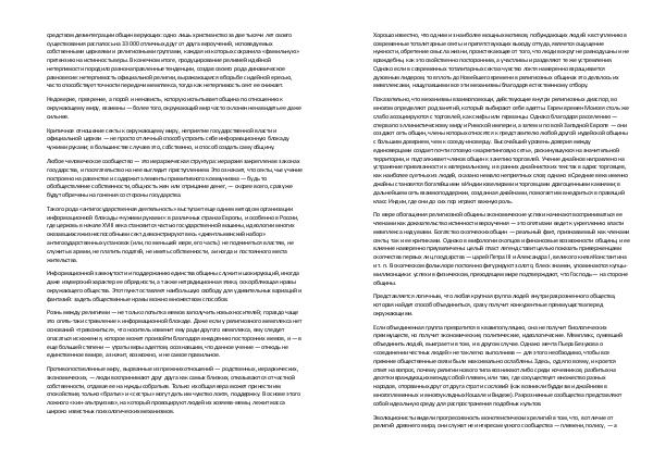 Если объединенная группа превратится в квазипопуляцию, она не получит биологических преимуществ, но получит экономические, политические, идеологические. Мемплекс, сумевший объединить людей, выиграет и в том, и в другом случае. Однако мечта Пьера Безухова о « соединении честных людей » не так легко выполнима— для этого необходимо, чтобы все прежние общественные связи были максимально ослаблены. Здесь, судя по всему, и кроется ответ на вопрос, почему религии нового типа возникают либо среди кочевников, разбитых на десятки враждующих между собой племен, или там, где сосуществует множество разных народов, оторванных друг от друга страт и сословий( как возникли буддизм и джайнизм в многоплеменных и многоукладных Кошале и Видехе). Разрозненные сообщества представляют собой идеальную среду для распространения подобных культов.