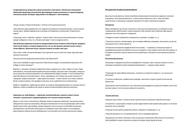 Выше мы познакомились с тремя способами проникновения психических вирусов в сознание: повторение, когнитивный диссонанс, а также метод « троянского коня ». Этим способам соответствуют и возможные сценарии поражения сознания психическим вирусом: