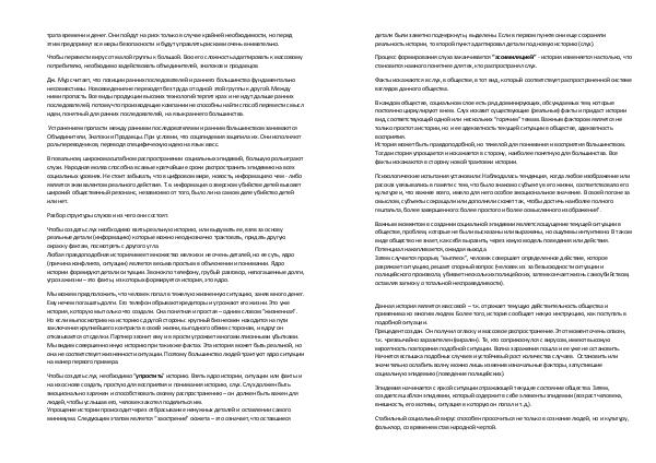 В каждом обществе, социальном слое есть ряд доминирующих, обсуждаемых тем, которые постоянно циркулируют в нем. Слух исказит существующие( реальные) факты и придаст истории вид, соответствующий одной или нескольких“ горячим” темам. Важным фактором является не только простота истории, но и ее адекватность текущей ситуации в обществе, адекватность восприятия. История может быть правдоподобной, но тяжелой для понимания и восприятия большинством. Тогда история упрощается и искажается в сторону, наиболее понятную для большинства. Все факты искажаются в сторону новой трактовки истории.