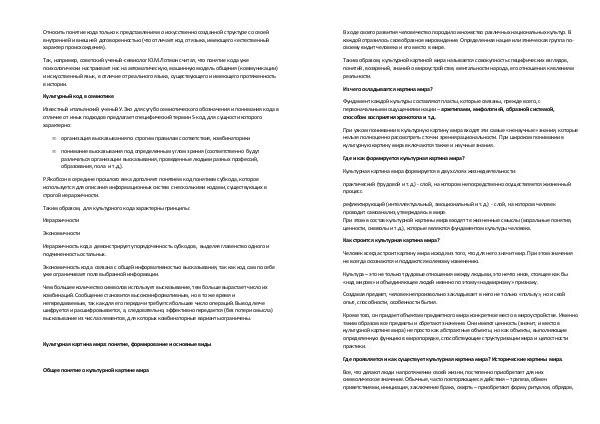 Где и как формируется культурная картина мира? Культурная картина мира формируется в двух слоях жизнедеятельности: