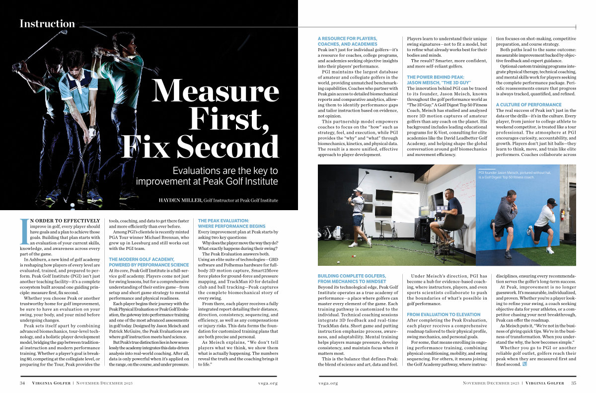 Whether you go to PGI or another reliable golf outlet, golfers reach their peak when they are measured first and fixed second. vsga. org N OVEMBER / D ECEMBER 2025 | V IRGINIA G OLFER