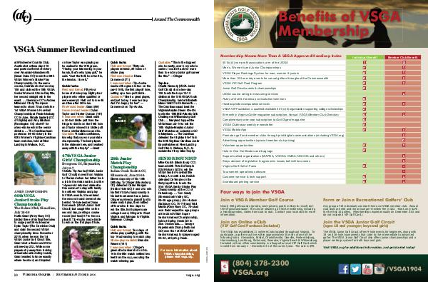 501( c)( 4) non-profit association; arm of the USGA Men’ s, Women’ s and Junior Championships VSGA Player Rankings System for men, women & juniors More than 100 one-day events for casual golfers throughout the Commonwealth VSGA VIP Golf Card Program Junior Golf Circuit events & championships USGA course rating & measuring services Rules of Golf & Handicap consultation / seminars Handicap Index / computation services VSGA-VIP Foundation; a qualified charitable 501( c)( 3) organization supporting college scholarships Bi-monthly Virginia Golfer magazine subscription; Annual VSGA Member Club Directory Complimentary one-year subscription to Golf Digest magazine VSGA Clubhouse weekly e-newsletter VSGA Mobile App Promotes golf and member clubs through print / digital communications( including VSGA. org) Advertising opportunities( special member club pricing) Volunteer opportunities Hole-In-One Certificates and bag tags Supports allied organizations( MAPGA, VGCSA, CMAA, NGCOA and others) Stays abreast of legislative & agronomic issues behind the scenes Virginia Golf Hall of Fame Tournament operations software Customer service & tech support Scoreboard printing service