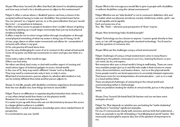 Alcyan: Does Second Life break Real Life barriers and can we have some examples of such?
