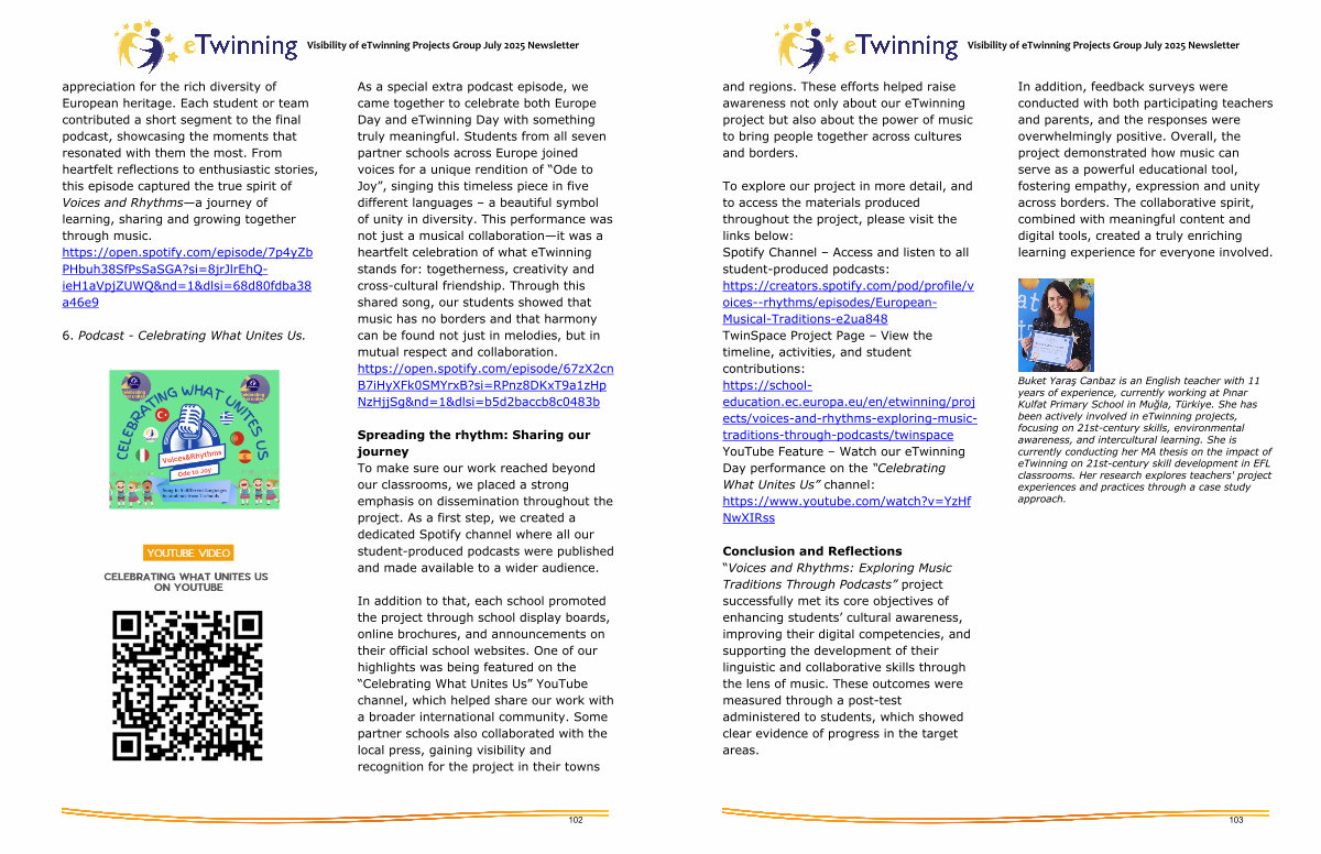 Visibility of eTwinning Projects Group July 2025 Newsletter and regions. These efforts helped raise awareness not only about our eTwinning project but also about the power of music to bring people together across cultures and borders.
