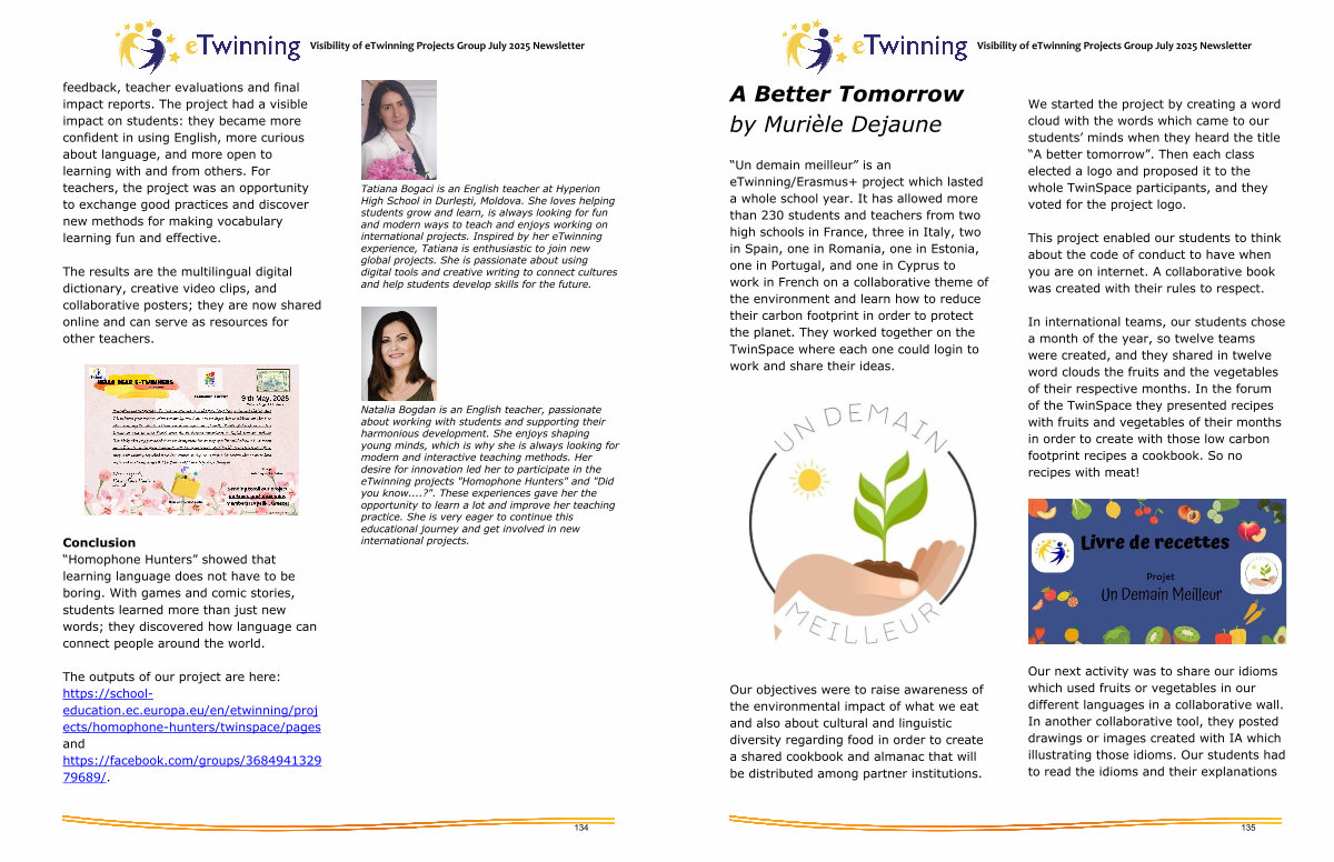 Visibility of eTwinning Projects Group July 2025 Newsletter feedback, teacher evaluations and final impact reports. The project had a visible impact on students: they became more confident in using English, more curious about language, and more open to learning with and from others. For teachers, the project was an opportunity to exchange good practices and discover new methods for making vocabulary learning fun and effective.