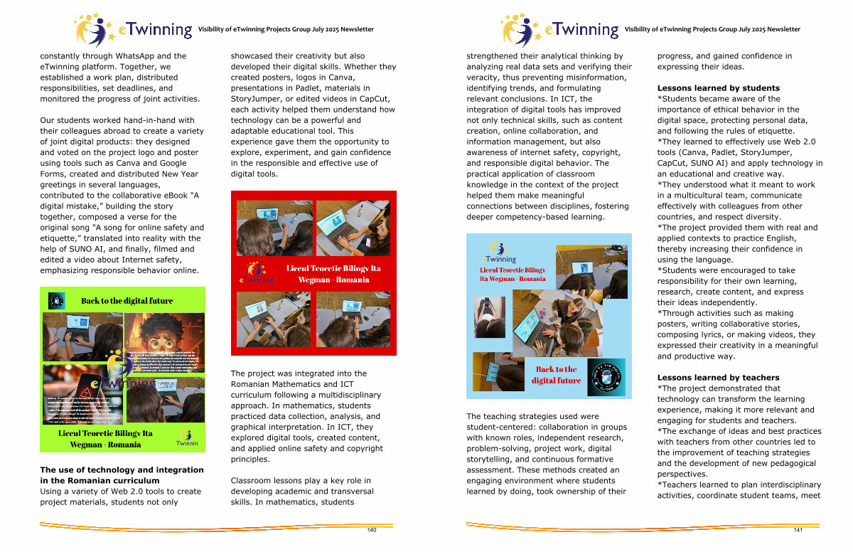 showcased their creativity but also developed their digital skills. Whether they created posters, logos in Canva, presentations in Padlet, materials in StoryJumper, or edited videos in CapCut, each activity helped them understand how technology can be a powerful and adaptable educational tool. This experience gave them the opportunity to explore, experiment, and gain confidence in the responsible and effective use of digital tools.