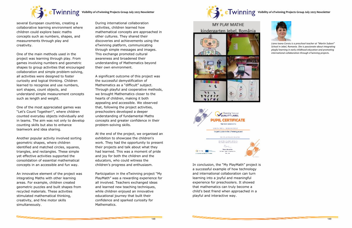 Visibility of eTwinning Projects Group July 2025 Newsletter several European countries, creating a collaborative learning environment where children could explore basic maths concepts such as numbers, shapes, and measurements through play and creativity.
