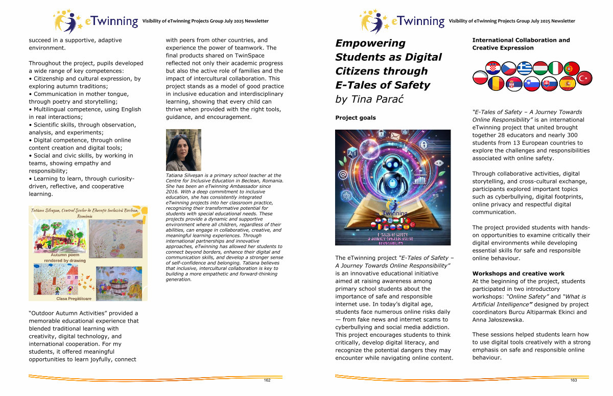 The eTwinning project“ E-Tales of Safety – A Journey Towards Online Responsibility” is an innovative educational initiative aimed at raising awareness among primary school students about the importance of safe and responsible internet use. In today’ s digital age, students face numerous online risks daily— from fake news and internet scams to cyberbullying and social media addiction. This project encourages students to think critically, develop digital literacy, and recognize the potential dangers they may encounter while navigating online content.
