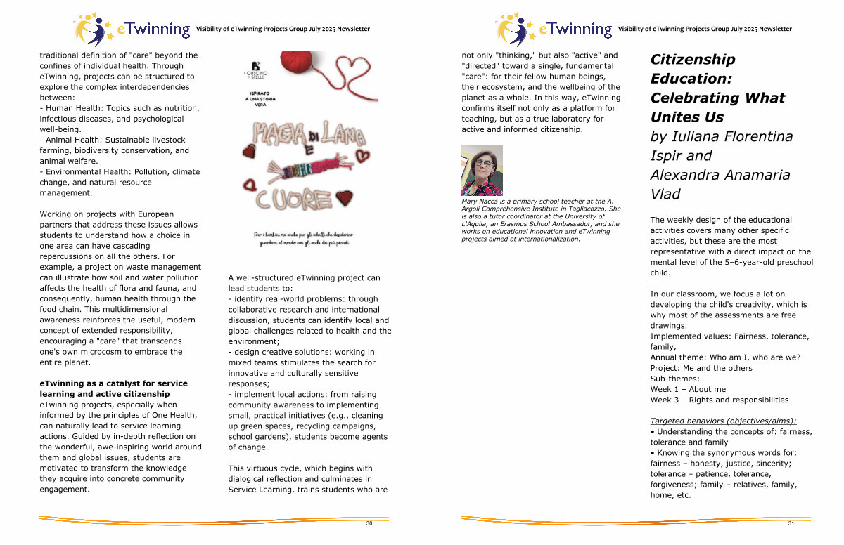 eTwinning as a catalyst for service learning and active citizenship eTwinning projects, especially when informed by the principles of One Health, can naturally lead to service learning actions. Guided by in-depth reflection on the wonderful, awe-inspiring world around them and global issues, students are motivated to transform the knowledge they acquire into concrete community engagement.