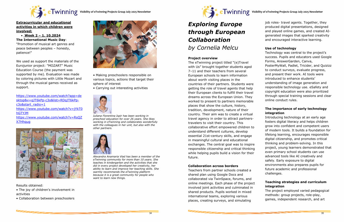 Alexandra Anamaria Vlad has been a member of the eTwinning community for more than 10 years. She teaches in kindergarten and the activities that she did in every project developed her creativity, her ability to learn and improve her teaching skills. She warmly recommends the eTwinning platform because it is a great community for people who want to learn new things.