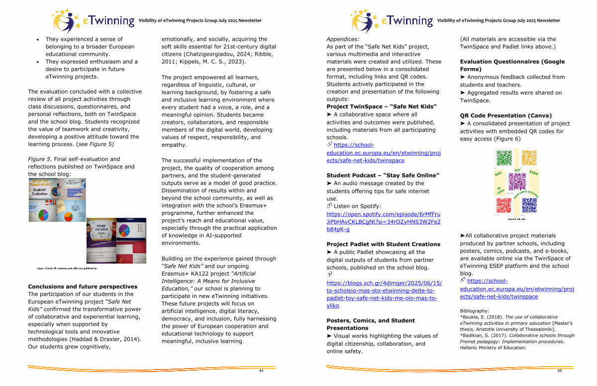Bibliography: * Boukla, E.( 2018). The use of collaborative eTwinning activities in primary education [ Master’ s thesis, Aristotle University of Thessaloniki ]. * Badikian, S.( 2017). Collaborative schools through Freinet pedagogy: Implementation procedures. Hellenic Ministry of Education.