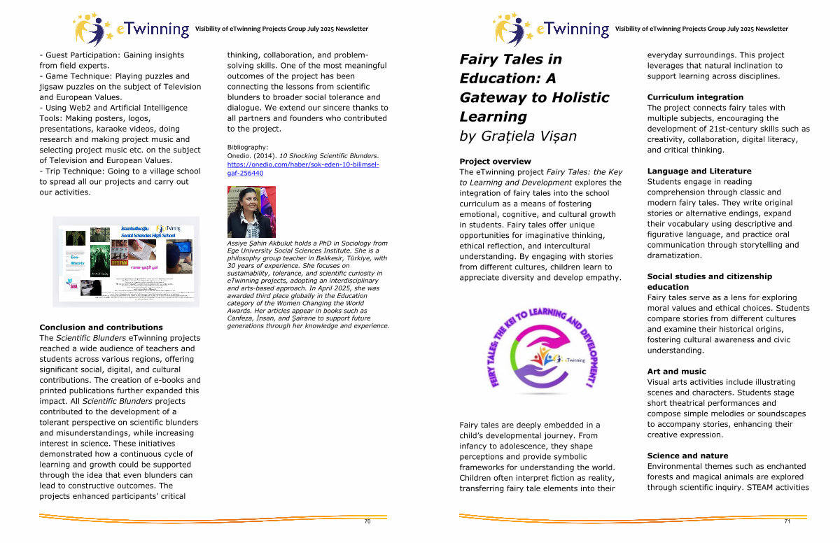 Curriculum integration The project connects fairy tales with multiple subjects, encouraging the development of 21st-century skills such as creativity, collaboration, digital literacy, and critical thinking.