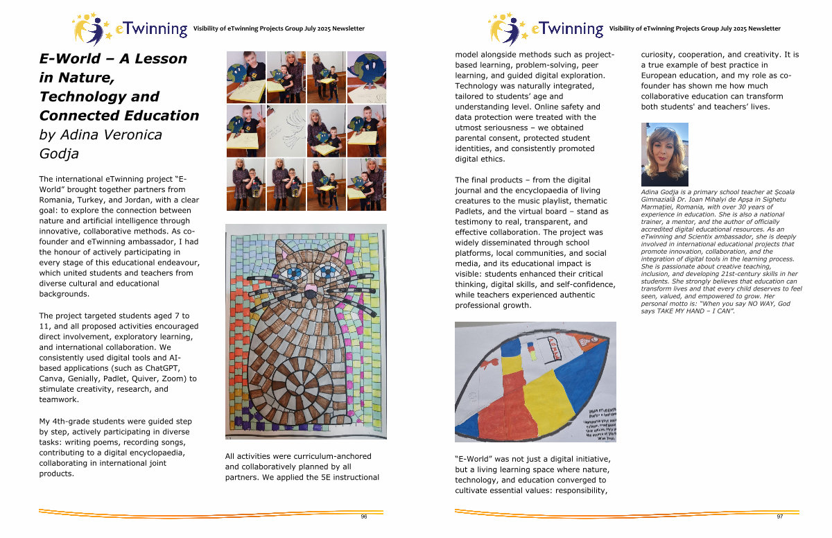 model alongside methods such as projectbased learning, problem-solving, peer learning, and guided digital exploration. Technology was naturally integrated, tailored to students’ age and understanding level. Online safety and data protection were treated with the utmost seriousness – we obtained parental consent, protected student identities, and consistently promoted digital ethics. curiosity, cooperation, and creativity. It is a true example of best practice in European education, and my role as cofounder has shown me how much collaborative education can transform both students ' and teachers’ lives.