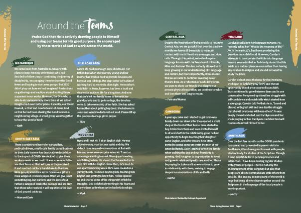 Praise God that He is actively drawing people to Himself and using our teams for His good purpose . Be encouraged by these stories of God at work across the world .