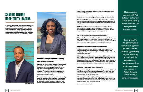 “ I ’ m so grateful for the opportunity I had to work as an apprentice for Visit Baltimore ’ s Diversity Apprenticeship program . By working so closely with the operations team , I was able to experience how to run programs and processes in the hospitality and tourism industry .”
