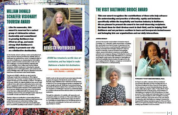 Like its namesake , this award is reserved for a select group of visionaries whose leadership and commitment to growing Baltimore has lifted us all up , and made strong Visit Baltimore ’ s ability to promote our city as a distinctive destination .
