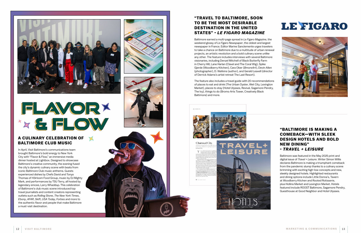 In April, Visit Baltimore’ s communications team brought Baltimore’ s bold energy to New York City with“ Flavor & Flow,” an immersive media dinner hosted at Lightbox. Designed to showcase Baltimore’ s creative community, the evening fused the city’ s dynamic culinary scene with beats from iconic Baltimore Club music anthems. Guests experienced dishes by Chefs David and Tonya Thomas of H3irloom Food Group, music by DJ Mighty Mark, and performances by TSU Terry, all hosted by legendary emcee, Larry Whaddup. This celebration of Baltimore’ s club music scene introduced top travel journalists and content creators representing outlets such as Rolling Stone, The New York Times, Ebony, AFAR, Skift, USA Today, Forbes and more to the authentic flavor and people that make Baltimore a must-visit destination.