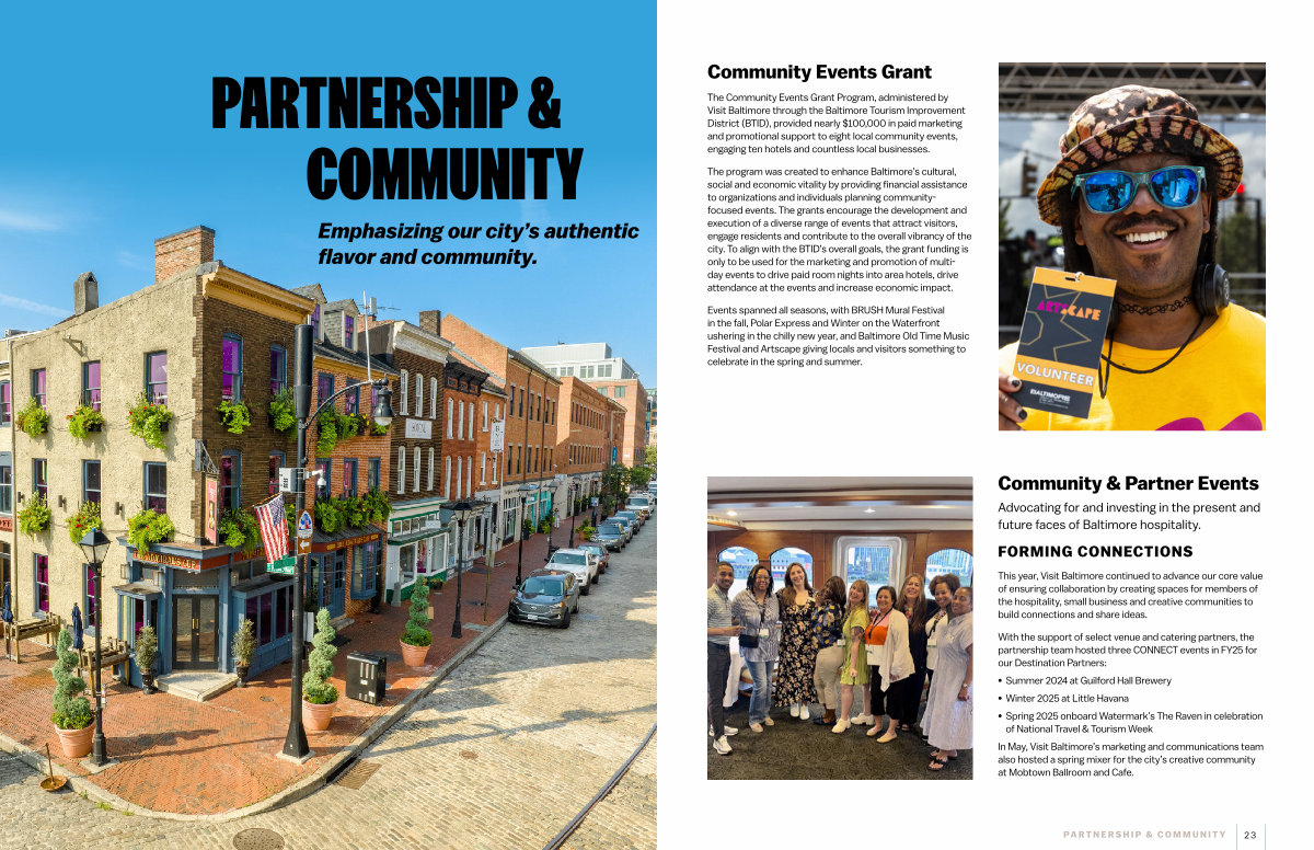 The Community Events Grant Program, administered by Visit Baltimore through the Baltimore Tourism Improvement District( BTID), provided nearly $ 100,000 in paid marketing and promotional support to eight local community events, engaging ten hotels and countless local businesses.