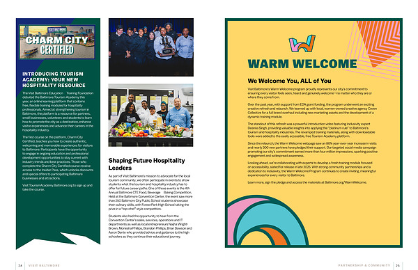 Visit Baltimore’ s Warm Welcome program proudly represents our city’ s commitment to ensuring every visitor feels seen, heard and genuinely welcome— no matter who they are or where they come from.
