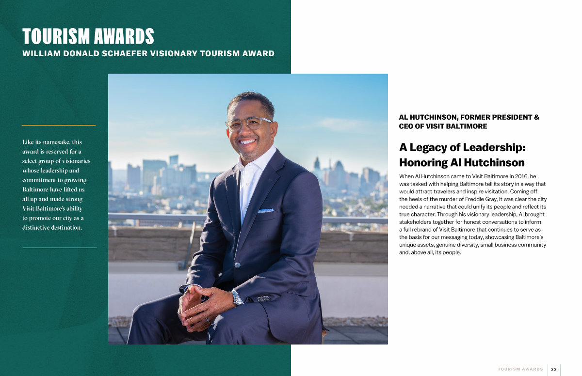 Like its namesake, this award is reserved for a select group of visionaries whose leadership and commitment to growing Baltimore have lifted us all up and made strong Visit Baltimore’ s ability to promote our city as a distinctive destination.