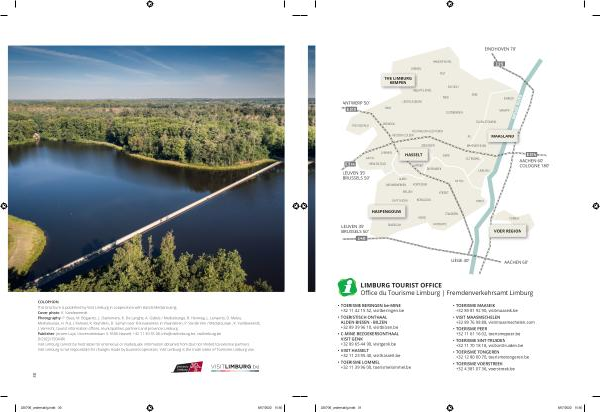 COLOPHON This brochure is published by Visit Limburg in cooperation with Hands Mediarouting . Cover photo : K . Vandeweerdt Photography : P . Baas , M . Bogaerts , L . Daelemans , K . De Langhe , A . Gijbels / Medialounge , B . Heirweg , L . Lenaerts , D . Malou , Medialounge , H . Put , J . Ramael , R . Reynders , D . Samyn voor Fietsvakanties in Vlaanderen , P . Vande Ven / Medialounge , K . Vandeweerdt , J . Verrecht , tourist information offices , municipalities , partners and provincie Limburg . Publisher : Jeroen Luys , Universiteitslaan 3 , 3500 Hasselt , + 32 11 30 55 00 , info @ visitlimburg . be , visitlimburg . be D / 2022 / 1504 / 06 Visit Limburg cannot be held liable for erroneous or inadequate information obtained from ( but not limited to ) external partners . Visit Limburg is not responsible for changes made by business operators . Visit Limburg is the trade name of Toerisme Limburg vzw .