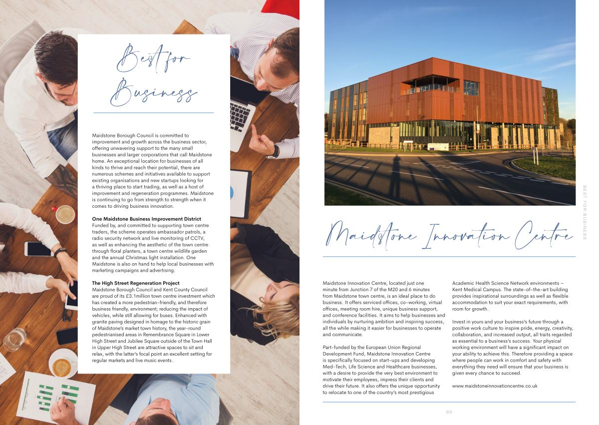 Maidstone Borough Council is committed to improvement and growth across the business sector , offering unwavering support to the many small businesses and larger corporations that call Maidstone home . An exceptional location for businesses of all kinds to thrive and reach their potential , there are numerous schemes and initiatives available to support existing organisations and new startups looking for a thriving place to start trading , as well as a host of improvement and regeneration programmes . Maidstone is continuing to go from strength to strength when it comes to driving business innovation .