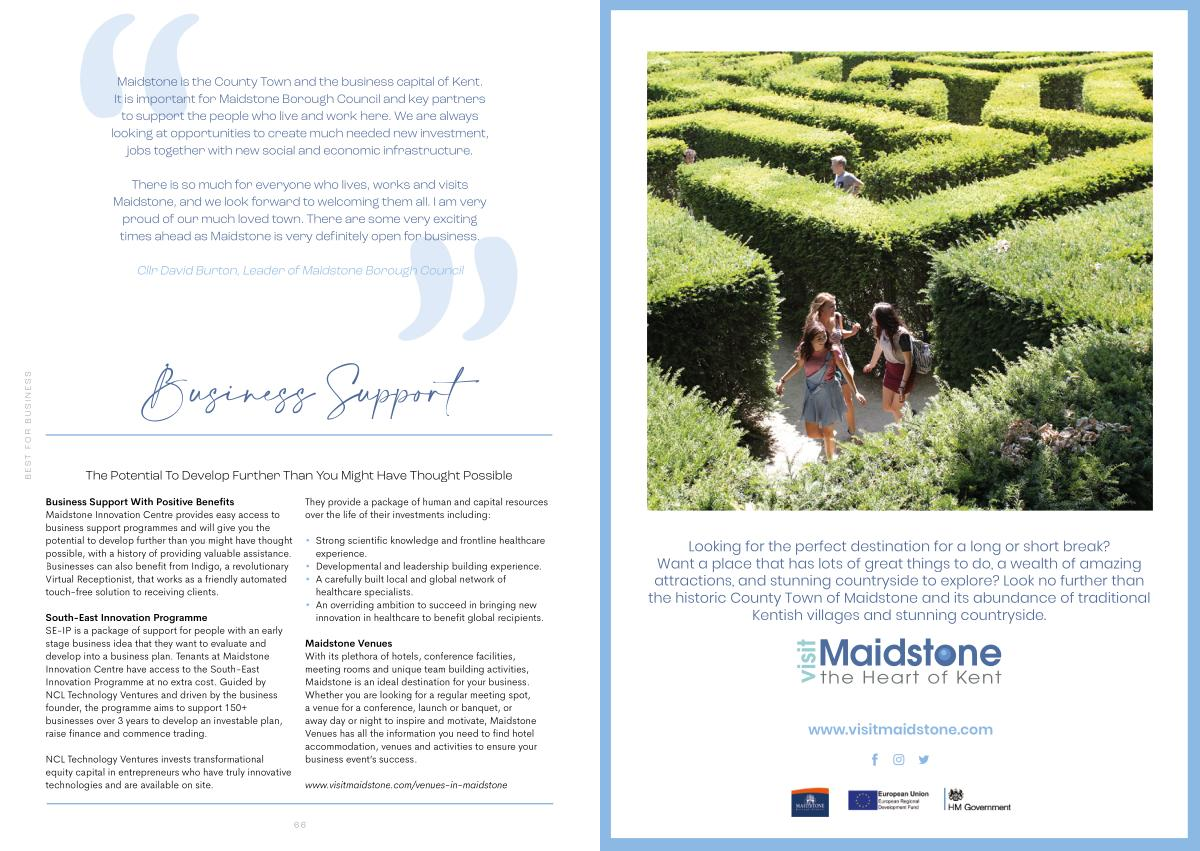 Maidstone is the County Town and the business capital of Kent . It is important for Maidstone Borough Council and key partners to support the people who live and work here . We are always looking at opportunities to create much needed new investment , jobs together with new social and economic infrastructure .