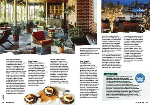 After your upstairs dining experience , you can venture downstairs for special hotel events during Black History Month in February . February 2020 featured exhibitions by local Black artists and discussions with Baltimore Black leaders and business owners ; 2021 is sure to be just as inspiring .
