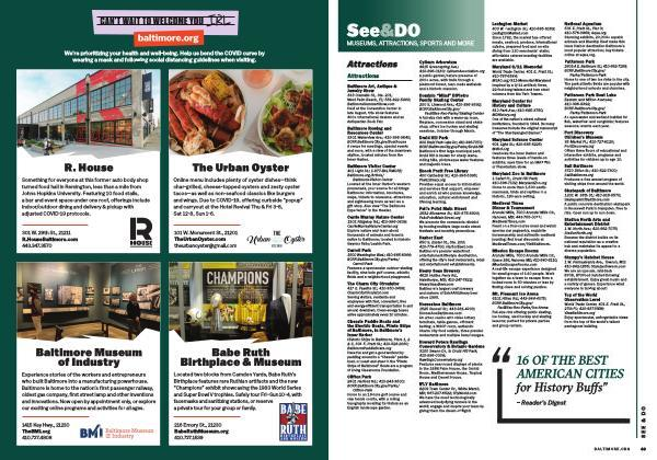 From fried chicken sandwiches to handcrafted pizza, R. House— Baltimore’ s industrial food hall located in the Remington neighborhood— has something for everyone. Head here to eat on the outdoor patio or take your food to go after browsing all 10 food stalls. But before your nosh, stop by the Baltimore Museum of Art’ s sculpture garden located just a few minutes down the road. The garden often hosts live performances, and the grounds are peppered with inspired works from 19th-century and modern artists. VB