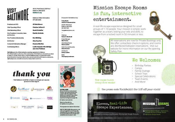 ON THE COVER Mecca Verdell , a local poet and teacher , was instrumental in the creative direction behind Visit Baltimore ’ s new BoP Pass , which showcases the city ’ s African American heritage ( see page 33 ).