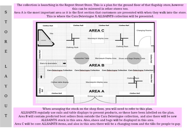 Area A is the most important area as it is the first section that customers are presented with when they walk into the store. This is where the Cara Delevingne X ALLSAINTS collection will be presented.
