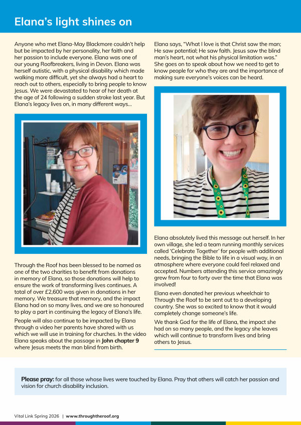 Anyone who met Elana-May Blackmore couldn’ t help but be impacted by her personality, her faith and her passion to include everyone. Elana was one of our young Roofbreakers, living in Devon. Elana was herself autistic, with a physical disability which made walking more difficult, yet she always had a heart to reach out to others, especially to bring people to know Jesus. We were devastated to hear of her death at the age of 24 following a sudden stroke last year. But Elana’ s legacy lives on, in many different ways …
