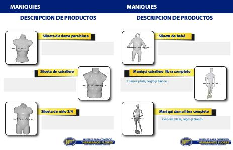 MANIQUIES DESCRIPCION DE PRODUCTOS Silueta de bebé Maniqui caballero fibra completo Colores: plata, negro y blanco Maniqui dama fibra completo Colores: plata, negro y blanco