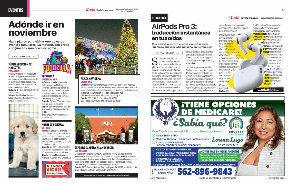 La nueva generación de AirPods se conecta con el iPhone y aprovecha la potencia de iOS y la inteligencia artificial para traducir, por el momento 5 idiomas de forma automática: inglés, español, portugués, francés y alemán; aunque la empre- sa de la manzana piensa agregar más idiomas en los próximos meses.