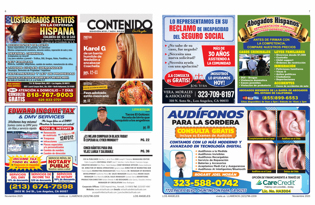 CEO & PUBLISHER Martha C. de la Torre COO Joseph P. Badame MANAGING EDITOR Pablo Scarpellini EDITORIAL STAFF José F. Sánchez, Carlos Maciel, Francisco Vargas CREATIVE DESIGN Rick Pérez, Yabet Badajoz CHIEF REVENUE OFFICER Liliana Zambrano SR. DIRECTOR OF MEDIA OPERATIONS Ignacio López DIRECTOR OF MARKETING B2B Frank Zepeda MARKETING MANAGER B2C Trevor Romero SR. MANAGER OF BUSINESS DEVELOPMENT Guillermo Pérez SR. SALES MANAGER Eduardo Mejía INSIDE SALES MANAGER Elvis Mancilla LOCAL SALES MANAGER Gustavo Sierra ADVERTISING PRODUCTION DIRECTOR Adrián Olmedo III AD DESIGNERS Julio Garcia, Oswaldo Jiménez MANAGER OF CIRCULATION Omar Rodríguez