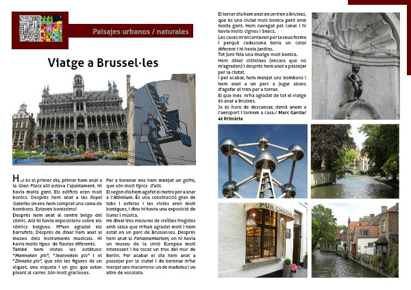He dinat tres mesures de creïlles fregides amb salsa que m'han agradat molt i hem estat en un parc de Brussel·les. Després hem anat al Parlamentarium, on hi havia un museu de la Unió Europea molt interesant i he tocat un tros del mur de Berlín. Per acabar el dia hem anat a passejar per la ciutat i de berenar m'he menjat uns macarrons: un de maduixa i un altre de xocolata.