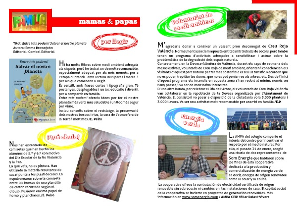 La cooperativa ofrece la contratación de electricidad certificada de origen renovable sin sobrecoste ni cambios en las instalaciones de casa. El capital social de la cooperativa se invierte en proyectos de generación renovables. Más información en www.somenergia.coop / AMPA CEIP Villar Palasí-Vivers