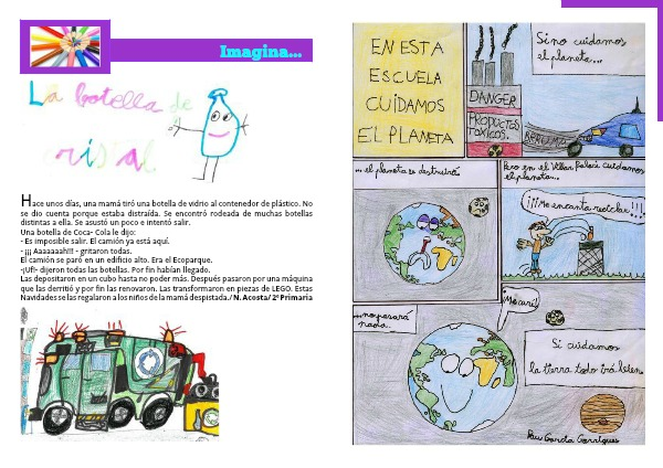 Hace unos días, una mamá tiró una botella de vidrio al contenedor de plástico. No se dio cuenta porque estaba distraída. Se encontró rodeada de muchas botellas distintas a ella. Se asustó un poco e intentó salir.