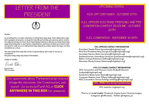 As of writing this, our state convention is thirty-three days away. That’s thirty-three days left to prepare art projects, to study for tests (if you feel like you need to), and to survive the daily monotony of school. More importantly, however, is that we are thirty-three days away from being able to see friends, acquaintances, and those of which you haven’t even met yet! For some of us, it’s thirty-three days away from a bitter-sweet two days: our final convention as a JCLer.