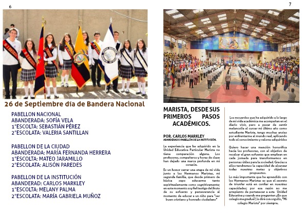 Es un honor cerrar una etapa de mi vida junto a los Hermanos Maristas, mi segunda familia, que desde primero de básica supo educarme tanto espiritualemente como cognitivamente; en este momento soy fiel testigo del fruto de su esfuerzo y perseverancia al momento de educar a un niño para "ser buen cristiano y honrado ciudadano"