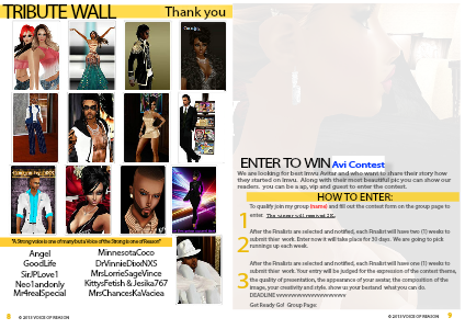 I need to put all your jewlery on and go shopping. Lorriesage you bring it, love those new dress you got I can get sexy for Treavor with your collection. AngelxCravingxU do you think you can send me a room, OMG girl I got to put my booty on the wall soon. SirJP1Love love your furniture, I have no furniture in my room I am a poor girl waiting for next the discount. Hey Strawberrydaq you are new on the block, girl u so sweet I bet you melt but I want to see your stuff in the Voice of Reason II Magazine and struck your stuff. Woo MrBossCooper, I was checking out your catty and wow, wow tell me why you are not in this magazine yet???MrsChancesKaVaciea, I love your style, you are not nasty with your outfit, most women with curves and booty need to cover up.