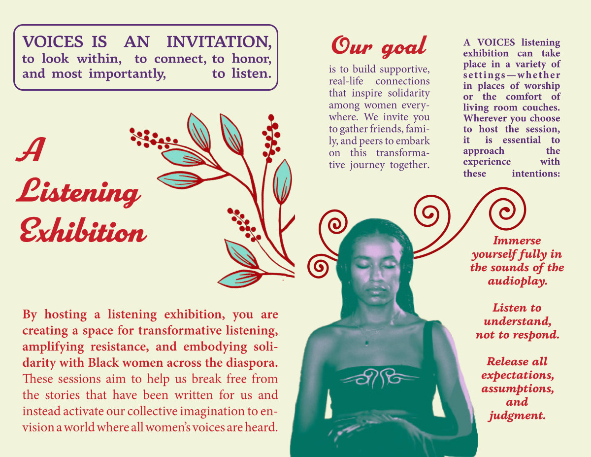 A VOICES listening exhibition can take place in a variety of settings— whether in places of worship or the comfort of living room couches. Wherever you choose to host the session, it is essential to approach the experience with these intentions: