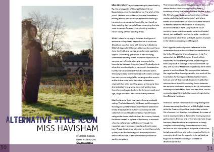 There is something about this gloomy goth icon, and others like her, that can only work against a backdrop of crisp autumns and bleak winters in the UK. All that anger, passion and desire for revenge needs a suitably stark background, and where better an environment for such an austere heroine as Miss Havisham to inhabit than in the equally severe marshes of Kent. Lady Macbeth could certainly never exist in an exotic sunshine-flooded island, just as Miss H – and her icy style – could not sulk anywhere other than a dimly lit, spidery mansion in the bleak countryscapes of England.