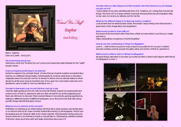 I had the right guidance from my new Second Life friends, helped me build myslef and shared some of their SL experience with me. Was all new for me at the beginning and there are still more to discover. Tried seversal things in Second Life, gaining experiences, talking to different people of different languages, up to the point now that I like doing specific things inworld that gives me joy