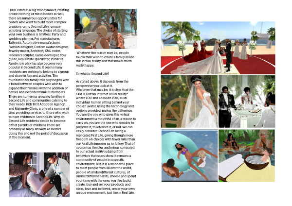 Family role play has also become very popular in Second Life. It seems many residents are seeking to belong to a group and share in fun and activities. The foundation for family role play begins with a bond between couples who wish to expand their families with the addition of babies and extended families members.
