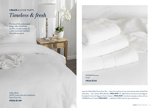 The Penny Burgundy Quilt Set combines deep, rich tones with a detailed botanical patchwork pattern. Layer with a White Cotton Blanket | FROM R749 | for an airy, textured finish, and complete the look with elegant Scatter Cushions | FROM R249 | For this bold, feminine style, choose 200 Thread Count 100 % Cotton Sheeting | FITTED SHEETS FROM R299 |— a classic range that’ s perfectly crisp and beautifully breathable.