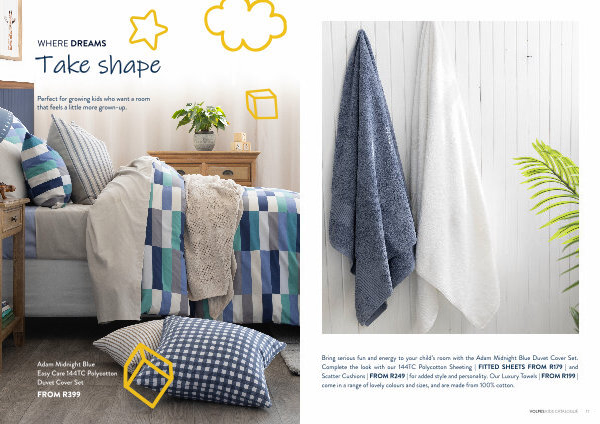 The Ollie Steel Blue Duvet Cover Set adds modern simplicity and playful charm to any child’ s space. Layer with our dreamy Waverley Grey Blanket | FROM R1 499 | and finish the look with Scatter Cushions | FROM R249 | for added warmth and texture. Complete the room with the understated Giulia Charcoal Rug | FROM R1 999 | for a beautifully grounded, cohesive finish.