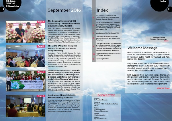One-day workshop on Application of Rapid Method in Food Processing will be organized by VPHCAP, Chiang Mai University in colla-boration with Obihiro University of Agri-culture and Veterinary Medicine, Japan on 22 September 2016 at Faculty of Veterinary Medicine, Chiang Mai University.