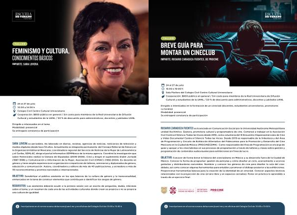 24 al 27 de julio 10:00 a 14:00 h Colegio Civil Centro Cultural Universitario Cooperación : $ 800 público en general / Sin costo para miembros de la Red Universitaria de Difusión Cultural y estudiantes de la UANL / 50 % de descuento para administrativos , docentes y jubilados UANL
