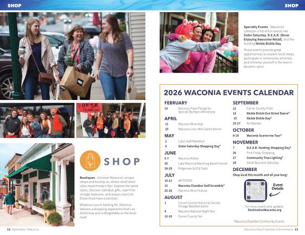 Whatever you’ re looking for, Waconia delivers a shopping experience that’ s as distinctive and unforgettable as the town itself.